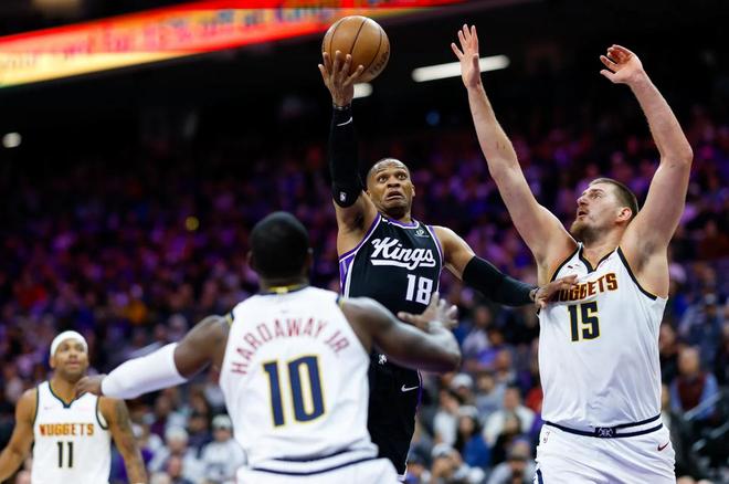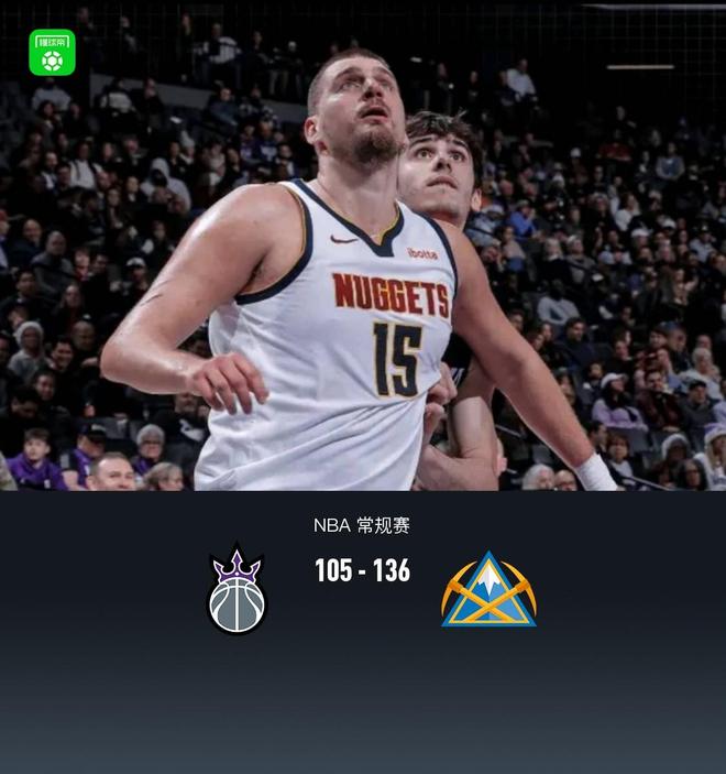 掘金136-105大勝國(guó)王,約基奇16中14轟下36+12+8,威少17分