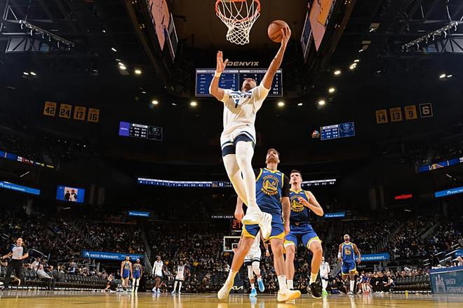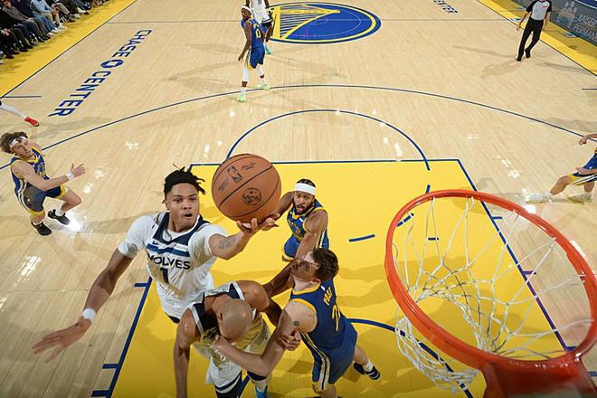 沖擊力相當(dāng)出色!森林狼后場(chǎng)新星簡(jiǎn)直是沖垮了勇士的防線?